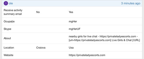 First the user details are edited : ocupation/skype/about/website then it start posting spam links.
